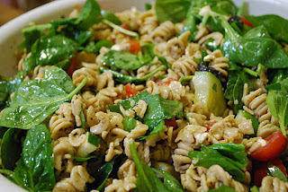 Artichoke hearts, sun-dried tomatoes, chopped onion or bell pepper, and/ or roasted red peppers would all be great in here also. For an Italian pasta salad substitute pepperoni, salami, mozzarella, or your vegetables of choice for the spinach, feta, and zucchini.
